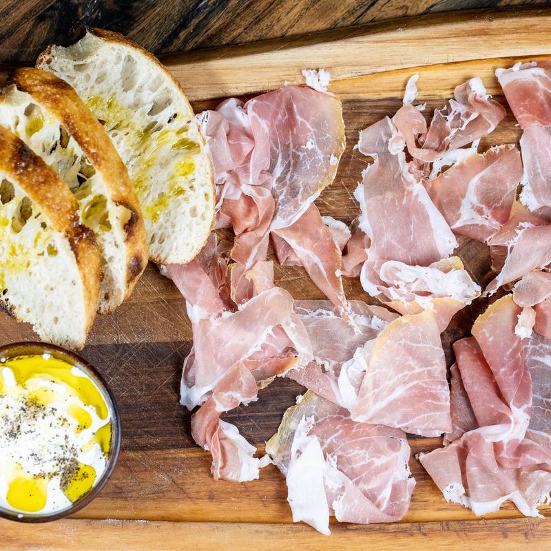 24-month cured imported prosciutto, served with homemade stracciatella and fresh-baked focaccia.