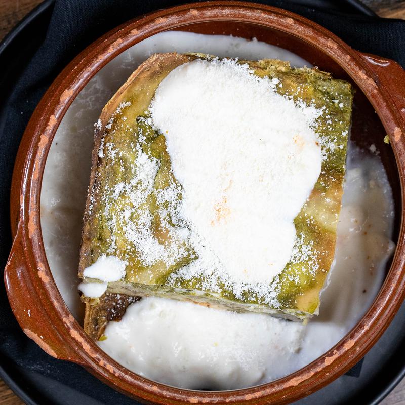 Traditional Bolognese sauce, aged parmigiano reggiano, stracciatella, basil oil.
