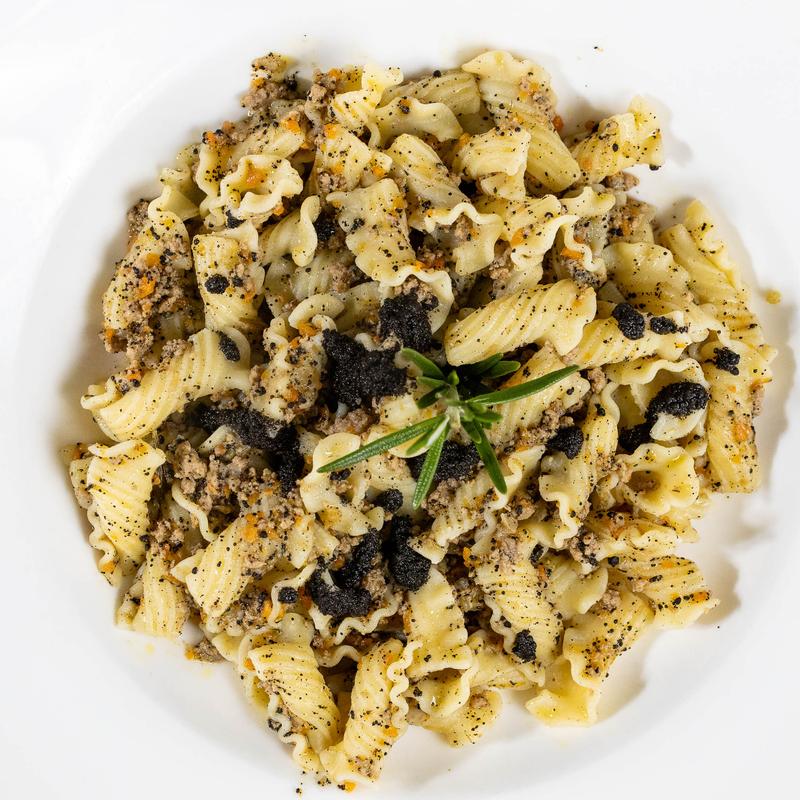 Homemade fettuccine, wild king oyster mushrooms, garlic, black truffle, light cream.